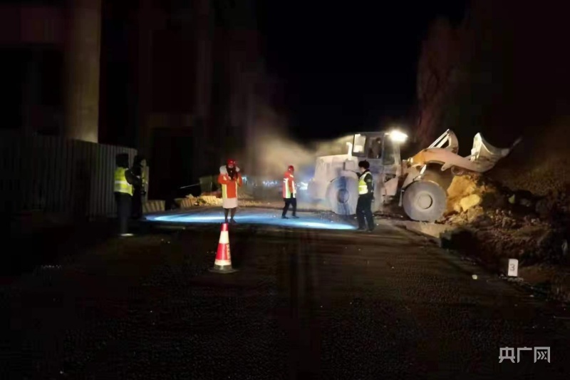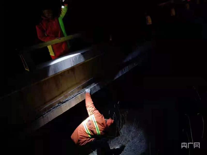 工作人员排查震区公路基础设施受损情况(央广网发 青海省公路局供图)