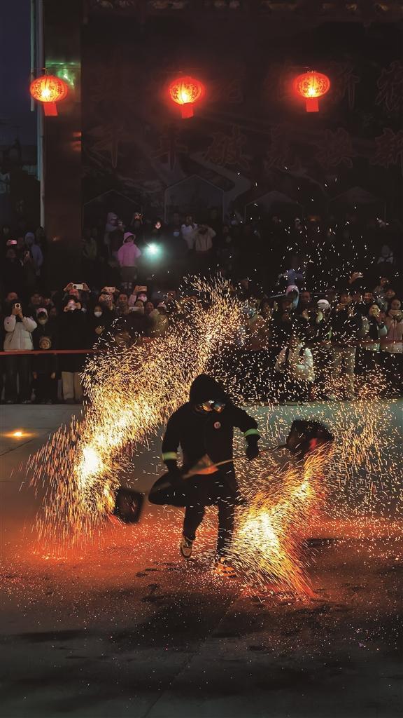 打铁花是流传千年的非遗绝技,寓意新的一年红红火火、吉祥如意。此次表演让村民在家门口领略了非遗风采,也让古老技艺在新春佳节重焕生机。孙长胜说,能为乡亲们表演,在传承老手艺的同时送上新春祝福,是最有意义的事。