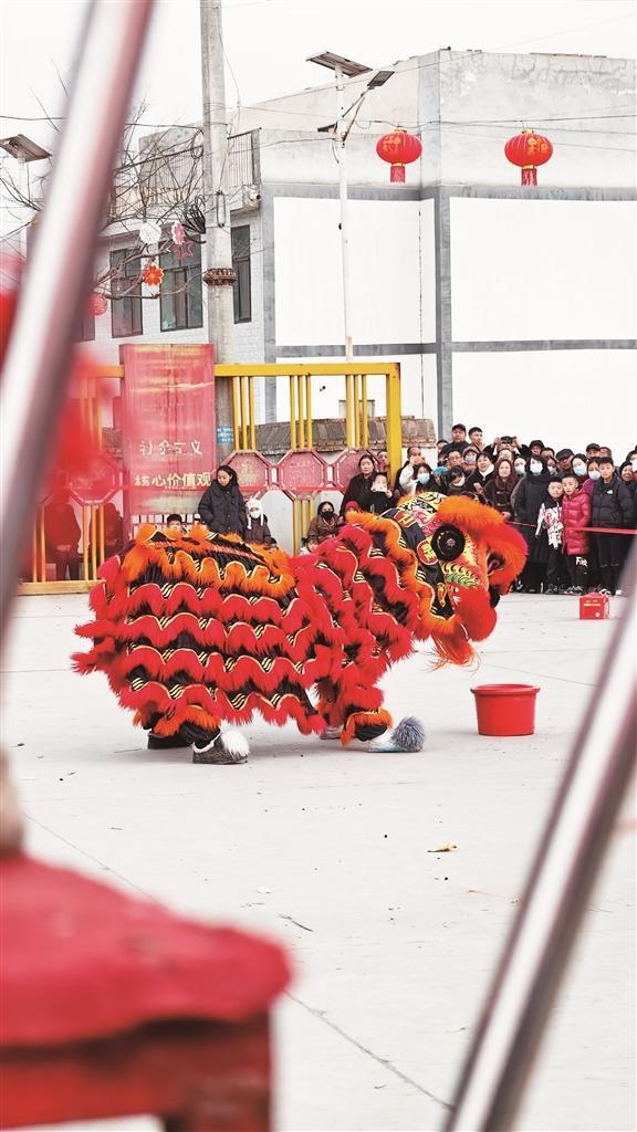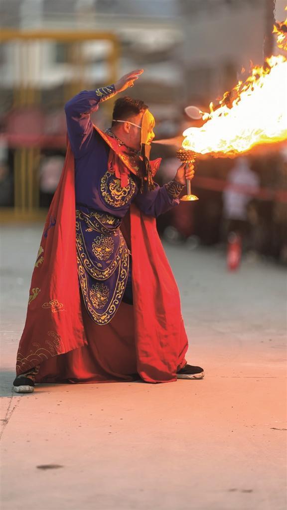 除了惊心动魄的打铁花,孙长胜和伙伴带来的火壶表演同样吸睛,火焰与器具灵动配合,动作娴熟流畅,尽显民间技艺的魅力。变脸、醒狮等民俗绝活接连上演,为乡村夜晚增添了浓浓的新春气息。