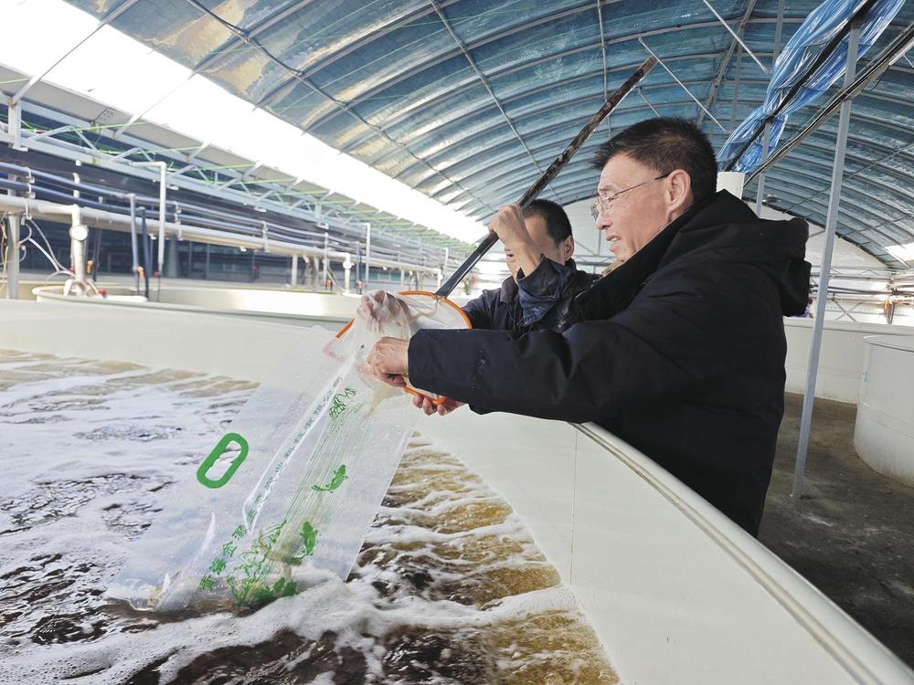 技术负责人张晨唏以前在工地上奔波,风吹日晒,收入也不稳定。跟着汪德金来到养殖基地后,公司派他到南方学习养殖技术。回到基地后,如何调水质、投饵料、防病害,他理论结合实际,一点一点啃下来,如今已成为独当一面的养殖能手。“在这里,我们做了别人不敢做的尝试,于我而言,挑战和收获同样具有吸引力。”