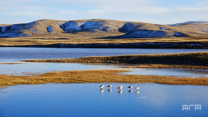 黄河源头青海省果洛藏族自治州玛多县的山河与鸟群(央广网记者 张海东 摄)