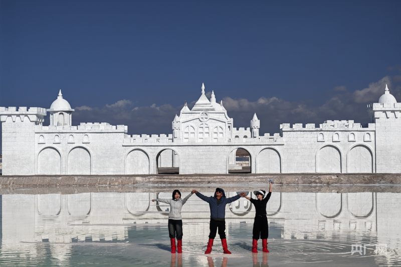 游客在茶卡盐湖拍照留影(央广网发 韦思念 摄)