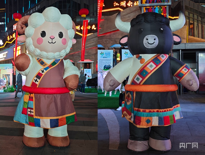 藏羊形象吉祥物“如意”和牦牛形象吉祥物“吉祥”(央广网发 韩志亮 摄)