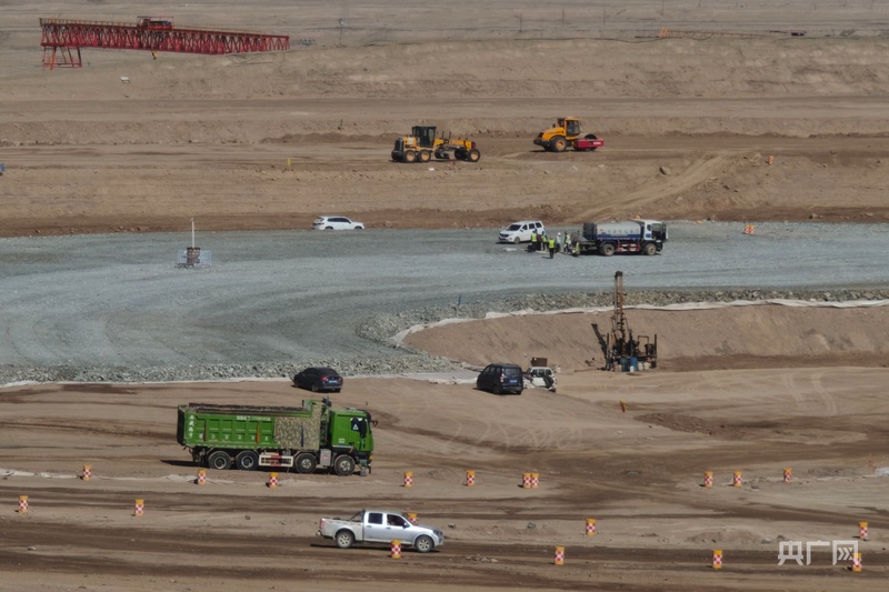 施工现场,下水库C2标项目经理闫武林表示,团队用预浸法破解沙戈荒地区施工难题,目前已完成大部分土石方开挖,预计2026年7月完成大坝填筑以及库房开挖工作。