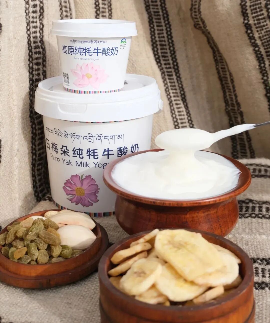 经过多年研发与迭代,公司已形成多元化产品矩阵,凝固型纯牦牛酸奶凭借绵密质地成为优质产品,搅拌型半脱脂纯牦牛酸奶精准契合健康消费需求,灭菌纯牦牛奶则通过便捷包装走进城市家庭的早餐桌。这些带着“雪山印记”的乳制品,不仅通过线上电商平台销往全国,还进驻一线城市高端商超,让高原风味真正走出雪山、融入大众生活。