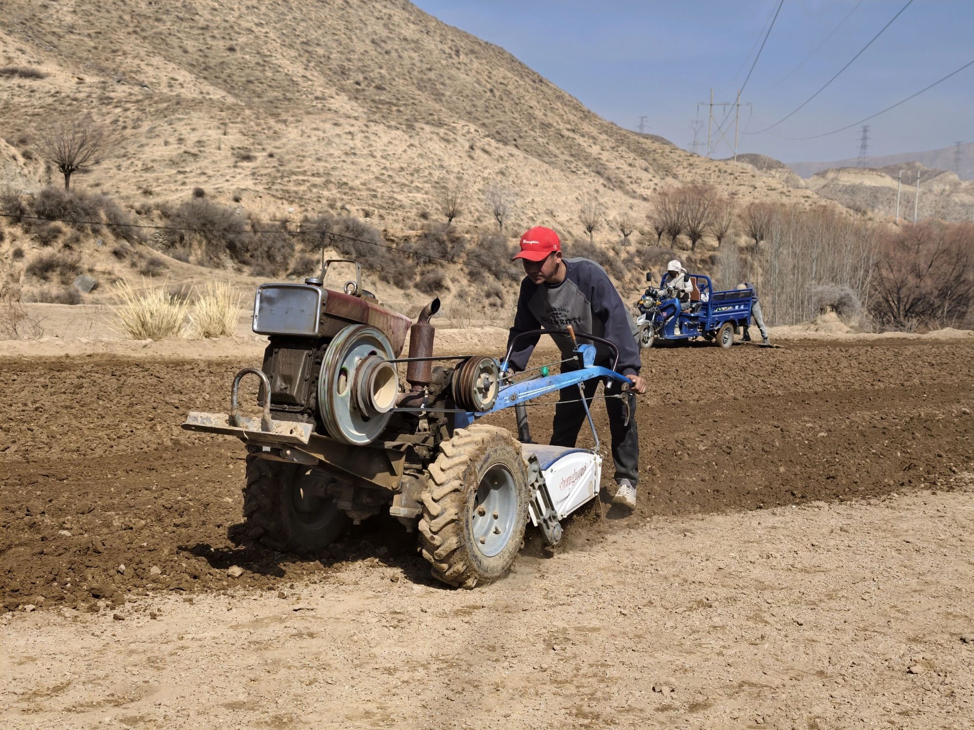 2月27日,在尖扎县昂拉乡尖巴昂村,村民们早早开着手扶拖拉机到地里耕田。随着拖拉机的轰鸣,沉睡了一个冬天的土地被唤醒。翻起的泥土散发着清新的味道,良种、有机肥被埋入地下,村民们三三两两、分工协作,动作娴熟流畅。