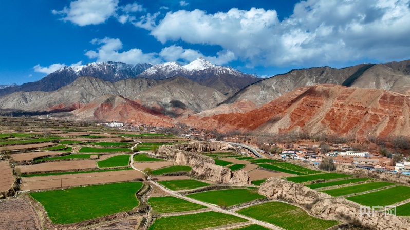 央广网西宁4月8日消息(记者张海东)4月7日,在青海省海南藏族自治州贵德县拉脊山,经历了几天连续降雪后迎来了春雪初晴。湛蓝的天空下,山顶上洁白的积雪与山脚下碧绿的麦田构成了一幅春日高原别样的风景。