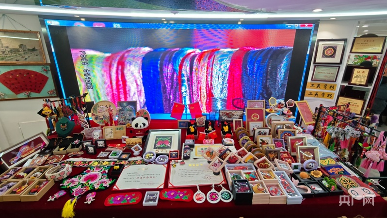 青绣技艺与文创产品“碰撞”,产出了形式多样的作品(央广网发 韩志亮 摄)