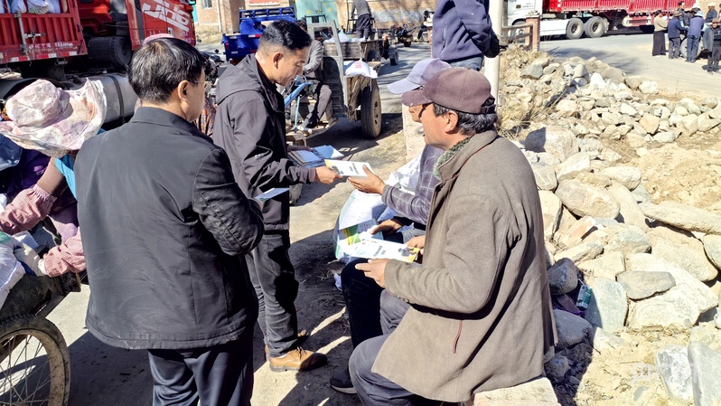 在循化县循化县文都乡中库沟哇库村,农技人员深入田间地头给村民宣讲一号文件,发放宣传册(央广网发 循化县融媒体中心供图)