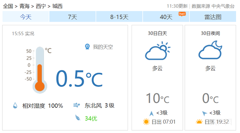 3月30日下午西宁市城西区的天气情况(央广网发 青海省气象局天气预报截图)