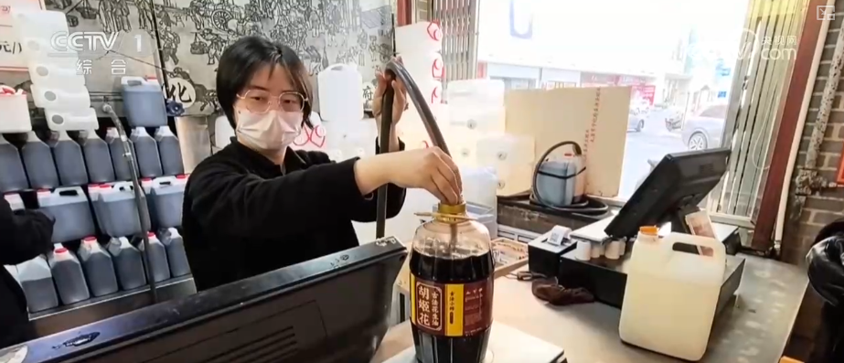 在山西太原,冬至打醋也是一项重要习俗。一家老字号老陈醋店铺里,带着各种容器的消费者排起了长队,冒着热气的老陈醋灌入容器,也让人们的冬至饺子有了更好的滋味。