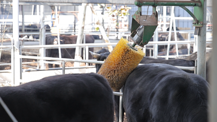 “我们给黑牛吃熟食、睡软床、听音乐、做按摩。”贺晨浩介绍,通过熟制谷物饲料、发酵床养殖等精细化科学养殖手段,让黑牛获得一个舒适放松的育肥环境,促进雪花纹路的沉积,让黑牛的肉质更好。
