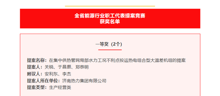 山东省能源行业及济南市职工代表提案竞赛,旨在持续深化“公开解难题民主促发展”主题活动,推动以职工代表大会为核心的民主管理制度落地生根,激励广大职工代表主动履职尽责,为行业高质量发展注入新动能。济南热力集团工会高度重视此次竞赛,积极统筹协调各部门、各分子公司职工参与提案创作,广泛动员职工立足岗位建言献策,在集团内部形成了“全员参与、共创共享”的浓厚民主管理氛围。
