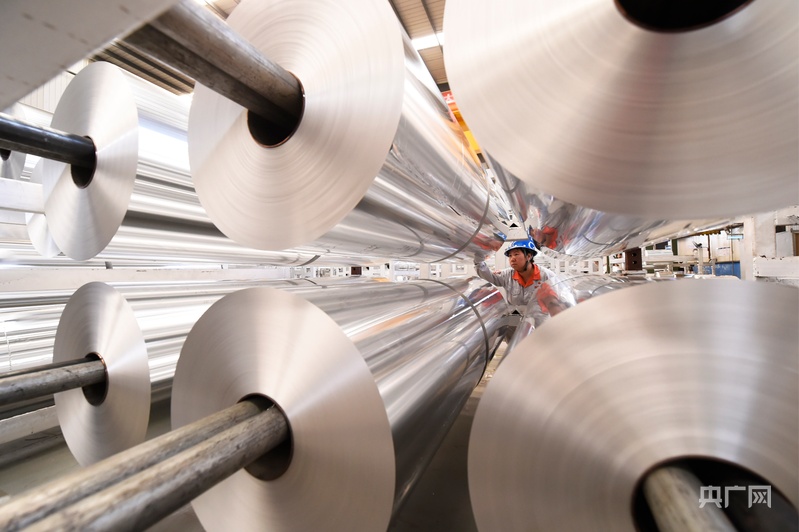 滨州市一家铝业公司工人在查看即将出口的小型高档铝卷(央广网发 董乃德 摄)