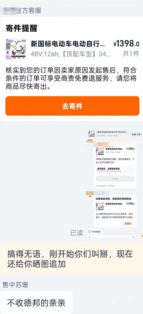 袁先生与网店在退货物流选择上存在分歧(央广网发 袁先生供图)