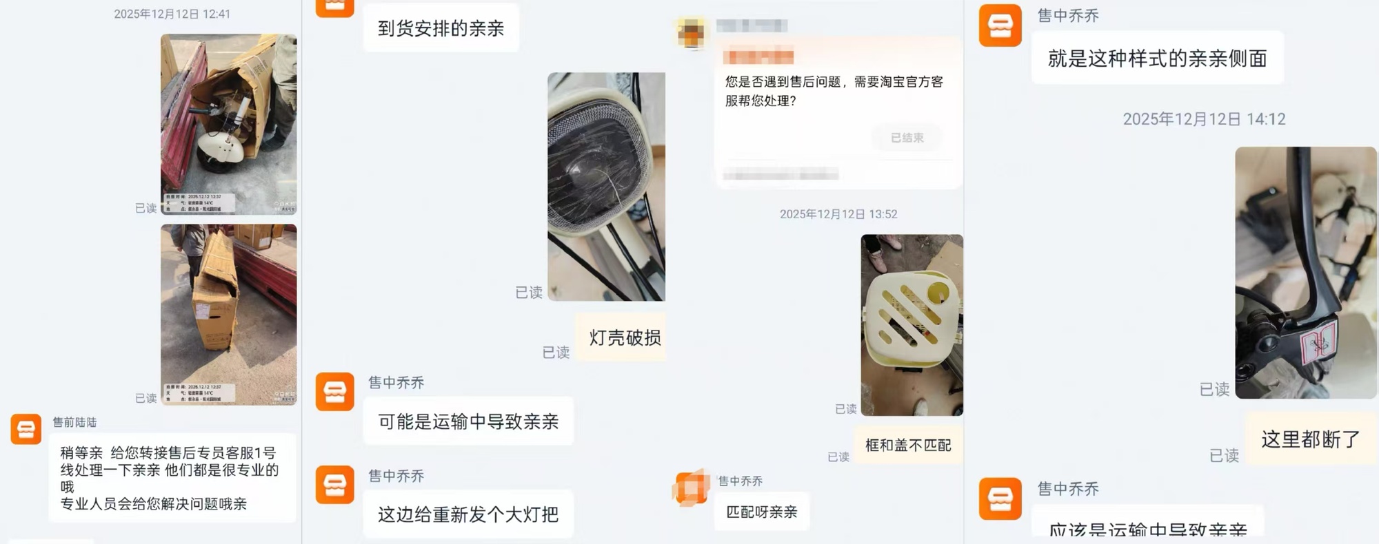 袁先生说,2025年12月,自己在电商平台下单收到电动自行车时发现包装破损,手刹断裂,灯壳破损,钥匙孔错位,车筐盖偏小。后来他又发现很多小的质量问题,最让他难以接受的是,车辆配备电池与自己购买链接的电池型号不同。