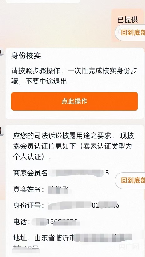 电商平台向袁先生提供商家认证信息(央广网发 袁先生提供)