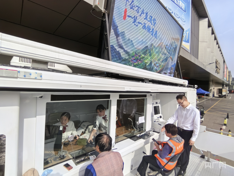 山东工行利用流动银行车开展“千企万户大走访”活动,现场为客户办理金融业务(央广网发 山东工行供图)