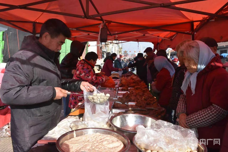 村民在大集上选购炸货(央广网发 杨俊花 摄)