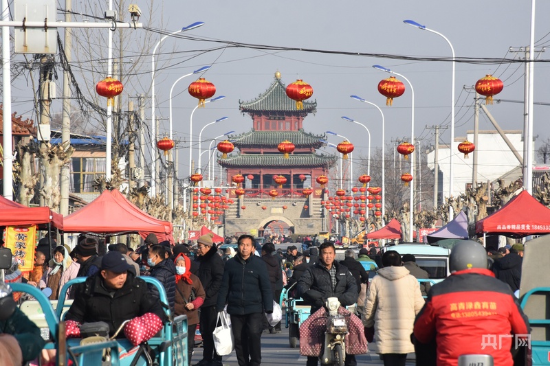 央广网济南2月13日消息(记者李舜 实习记者刘佳文)黄河岸畔春潮至,青城街头年味浓。文昌阁下鼓乐喧天、熙熙攘攘,此起彼伏的吆喝声穿透晨雾,春联摊的红纸映红街巷,吊炉烧饼的香气缠绕鼻尖……在山东省淄博市高青县,每逢农历二、七,青城大集便如期开集,平日里是烟火寻常的市井市集,一入腊月,便化作年味十足的年集。