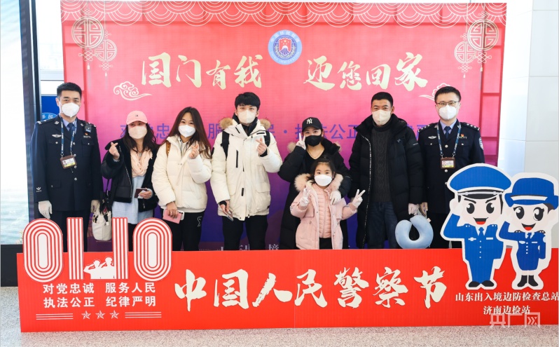 央广网济南1月10日消息(记者刘博伦)1月9日,山东出入境边防检查总站济南边检站民警在遥墙国际机场开展“国门有我 迎您回家”主题活动,设置了“我与警旗同框”拍照打卡点,与入境旅客一起迎接第三个中国人民警察节。