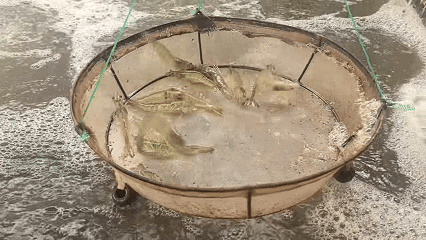 刚打捞上来的养殖对虾活力满满(央广网记者刘博伦 制图)