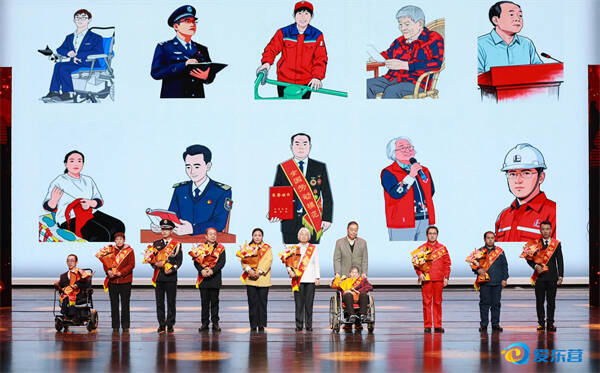本届感动人物杨仕强还发挥特长,为十位获奖者精心创作了漫画形象,在仪式尾声集体亮相,以独特的艺术形式定格了他们的可爱模样,成为一份特别的“东营记忆”。最后,在全场《暖》的合唱声中,仪式落下帷幕,但感动的暖流在现场、在整座城市持续流淌。