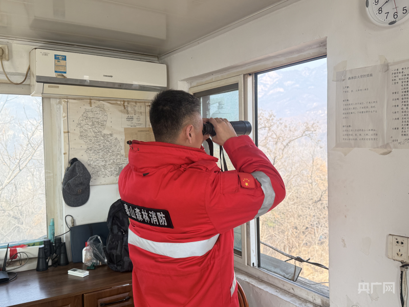 田军正在进行日常的瞭望工作(央广网发 张雨萱摄)
