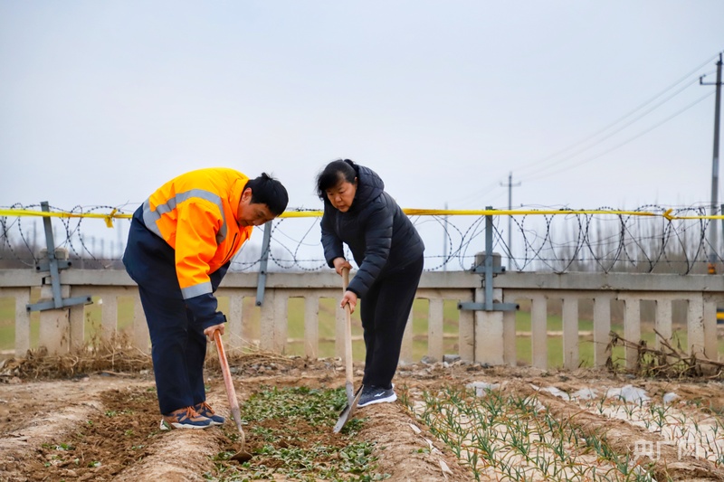 裴广仓和妻子在工作之余一起种菜(央广网发 宋敏玲 摄)
