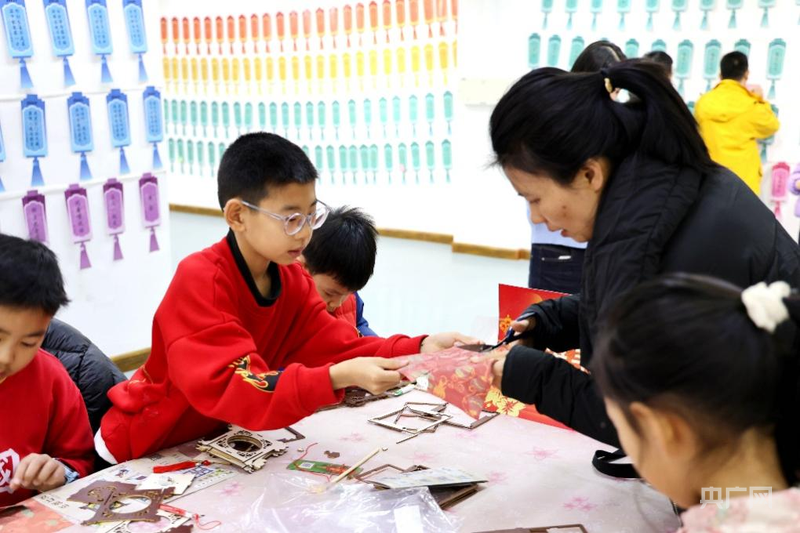 小朋友亲手制作马年主题灯笼(央广网发 郭友生 摄)