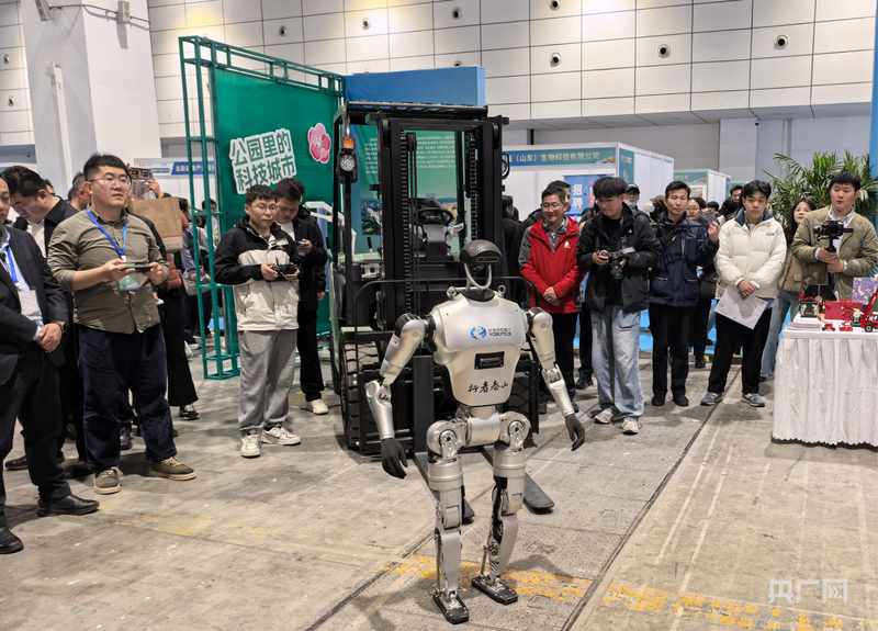参会人员现场看机器人表演,近距离感受济南机器人产业的创新活力。(央广网记者 刘佳音 摄)