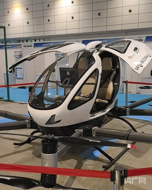 航空航天与低空经济专区内,低空设备集中展示,吸引参会人才驻足了解。(央广网记者 刘佳音 摄)