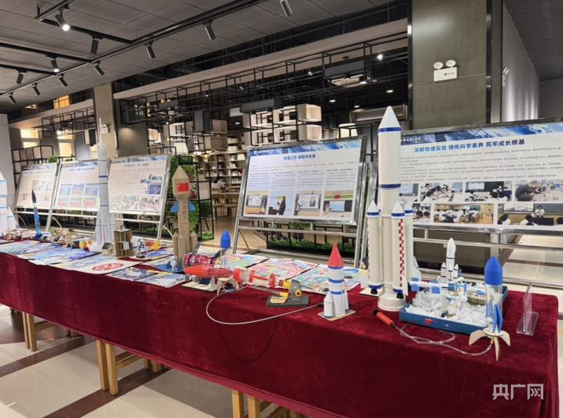 航天作品展示区,学生制作的火箭模型尽显创意与科学巧思(央广网发 张雨萱 摄)