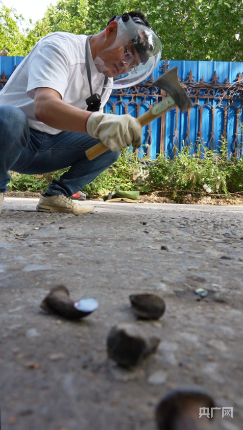 胡尚杰正在“拔钉”(央广网记者 唐磊 摄)