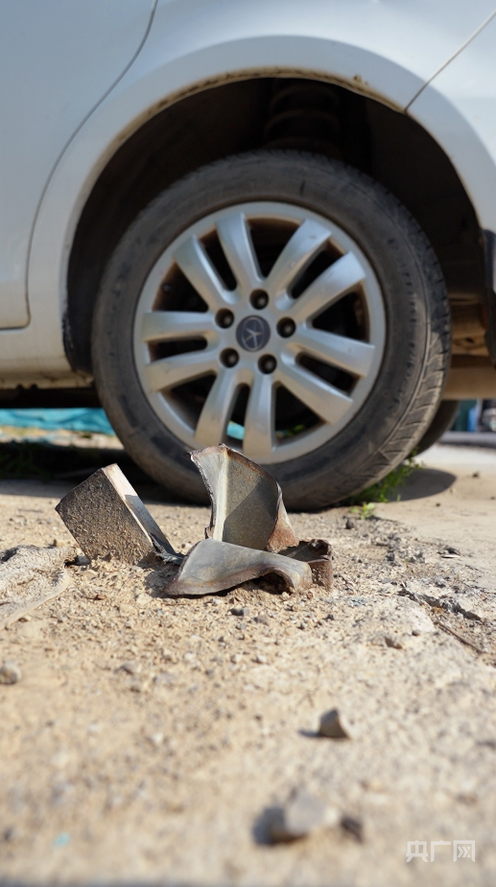 在两辆车之间,胡尚杰发现了一个大“钉子”,“这是个10厘米乘10厘米的方管,虽然地面上只留了8厘米左右,可是地下埋得深,是最难拔的。”