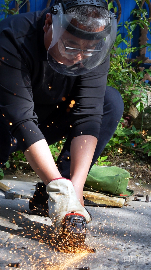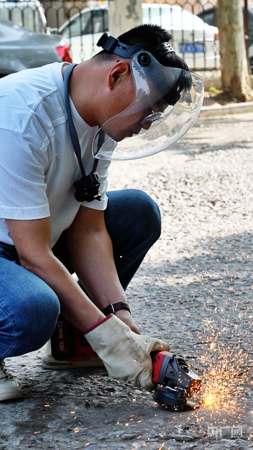 “怕碰见熟人,担心被误会是故意破坏公共设施。”胡尚杰说道。当机器启动,金属火花簌簌落下,一颗颗顽固外露的地钉被彻底铲除,那一刻,所有顾虑尽数消散。想到此后路人不会再被地钉划伤、车辆不会再被铁钉扎破,他内心满是踏实与欣慰。为了让更多人重视路面隐患,记录城市微小的安全改变,他开始用手机记录每一次拔钉全过程,分享公益瞬间,也因此被网友熟知,亲切冠以“拔钉人”的称号。