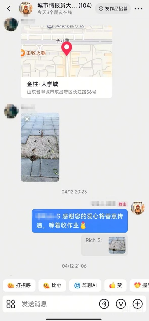 一人行善微光有限,众人聚力方成星河。随着拔钉视频在网络传播,越来越多网友认识了这位默默付出的城市守护者,主动为他提供各地路面地钉隐患线索。为了高效排查、清除城市隐患,胡尚杰搭建网友线索征集群,形成“网友报线索、自己实地清隐患”的暖心默契。网友发现隐蔽地钉后随手拍照上报,胡尚杰便抽空前往现场清理,完工后拍摄视频反馈进度、“交作业”,全民参与的城市安全守护模式悄然成型,汇聚起守护城市出行的民间力量。