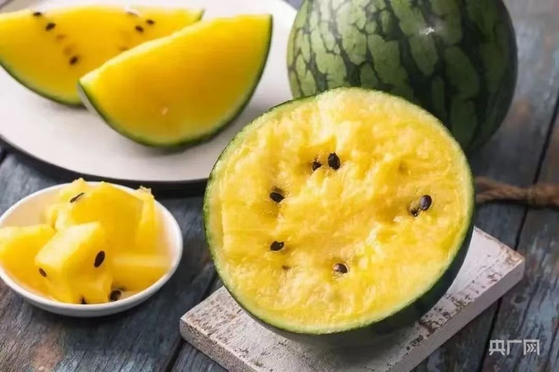 皮薄瓤黄、富含硒元素的仁风西瓜新鲜上市(央广网发 济阳区委宣传部 供图)