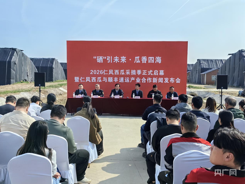 央广网济南4月4日消息(记者刘佳音 实习记者任茹伊)春风浩荡,瓜香四溢。4月2日,“硒”引未来·瓜香四海——2026仁风西瓜采摘季正式启幕新闻发布会在济南市济阳区仁风镇富硒西瓜产业园举行。与以往发布会有所不同,此次发布会场地直接设在大棚生产区,记者与行业嘉宾齐聚于此,共同见证仁风西瓜产业的蓬勃兴盛。