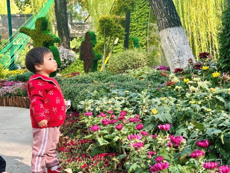小朋友被菊花吸引(央广网记者李舜 摄)