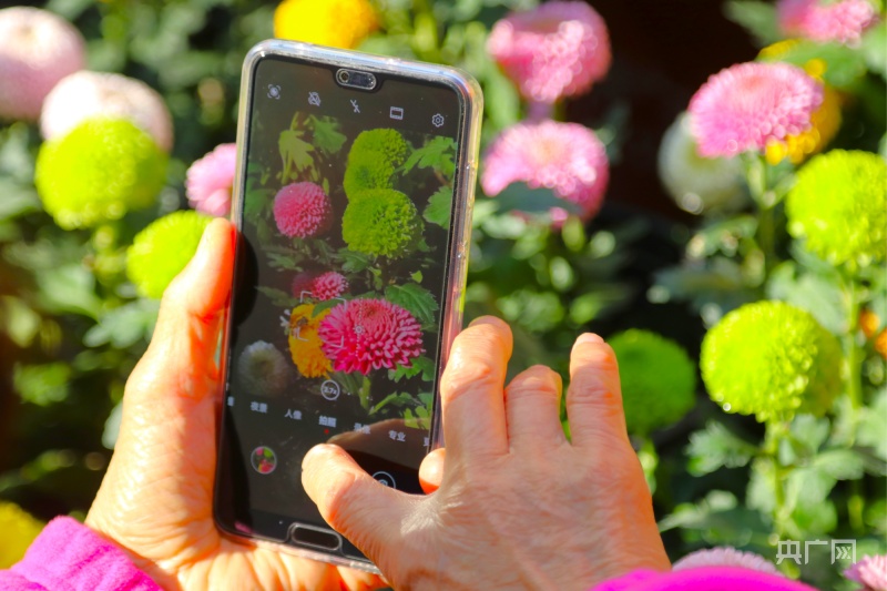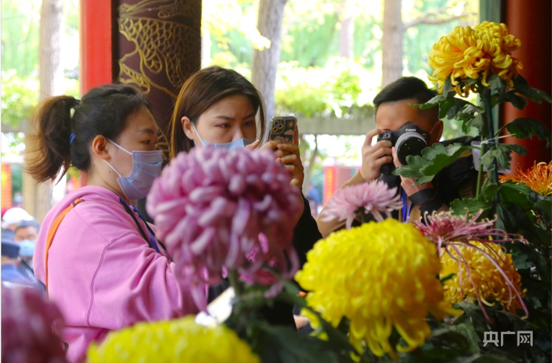 市民在菊展拍照留念(央广网记者刘博伦 摄)