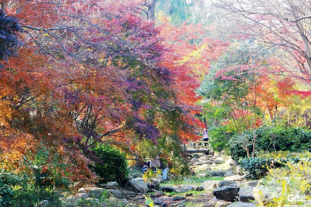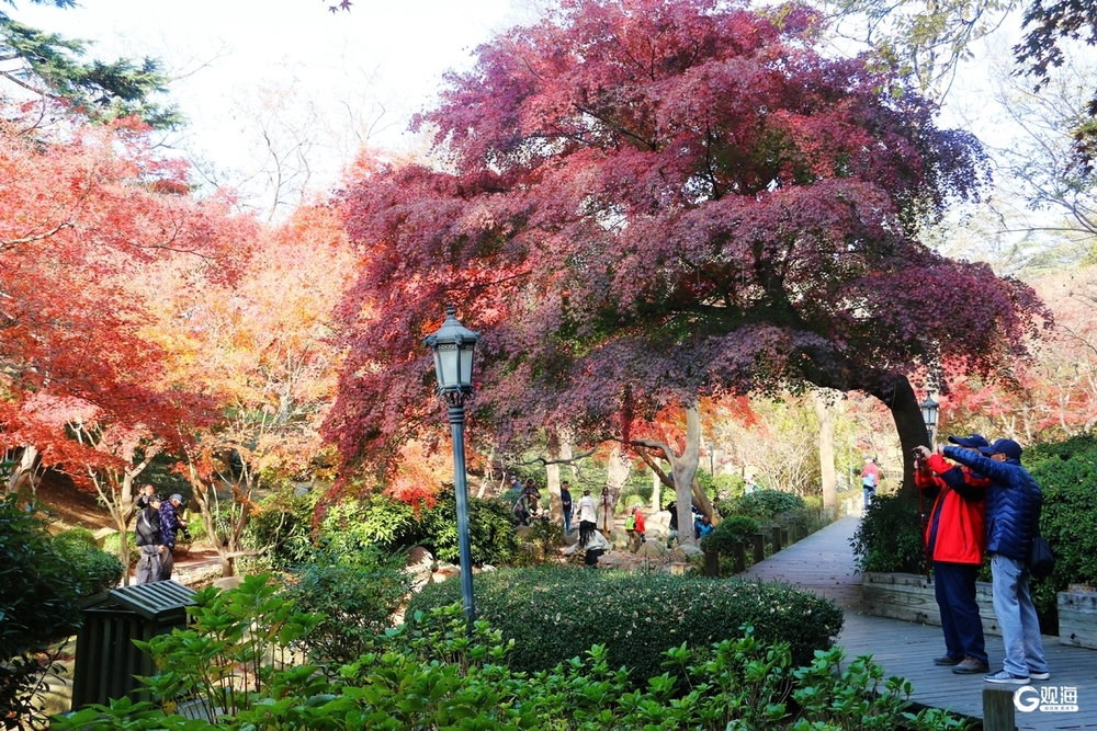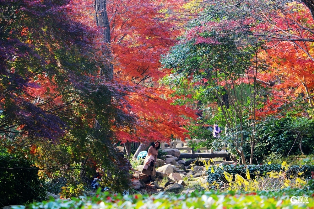 初冬的青岛中山公园,枫林涧藏着最浓烈的秋意余韵。枫树换上烈焰般的红装,层层叠叠的枫叶在微风中摇曳,光影交错间宛若打翻了调色盘。