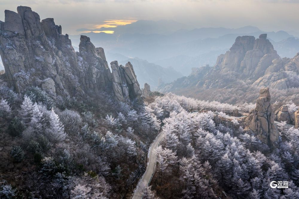 当雾凇裹住崂山的枝桠,整座山便成了时光滤过的宣纸——