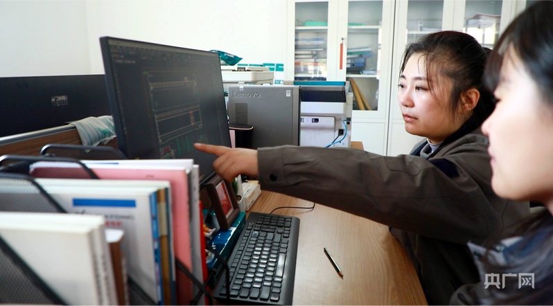 和树婷与同事沟通制图事宜(央广网记者 唐磊 摄)