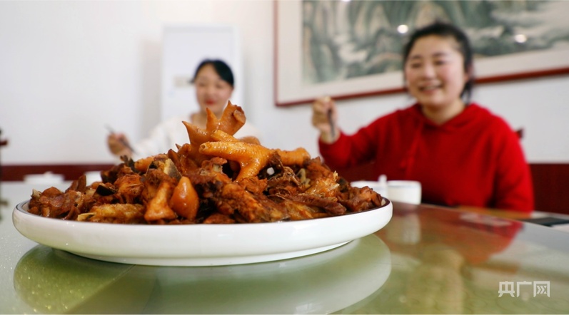 和树婷与朋友聚餐点的新泰炒鸡(央广网记者 唐磊 摄)