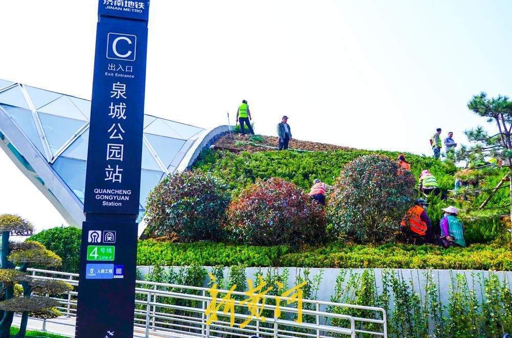 3月25日,记者在济南地铁4号线泉城公园站看到,位于经十路南侧的两个出入口开始绿化景观提升。