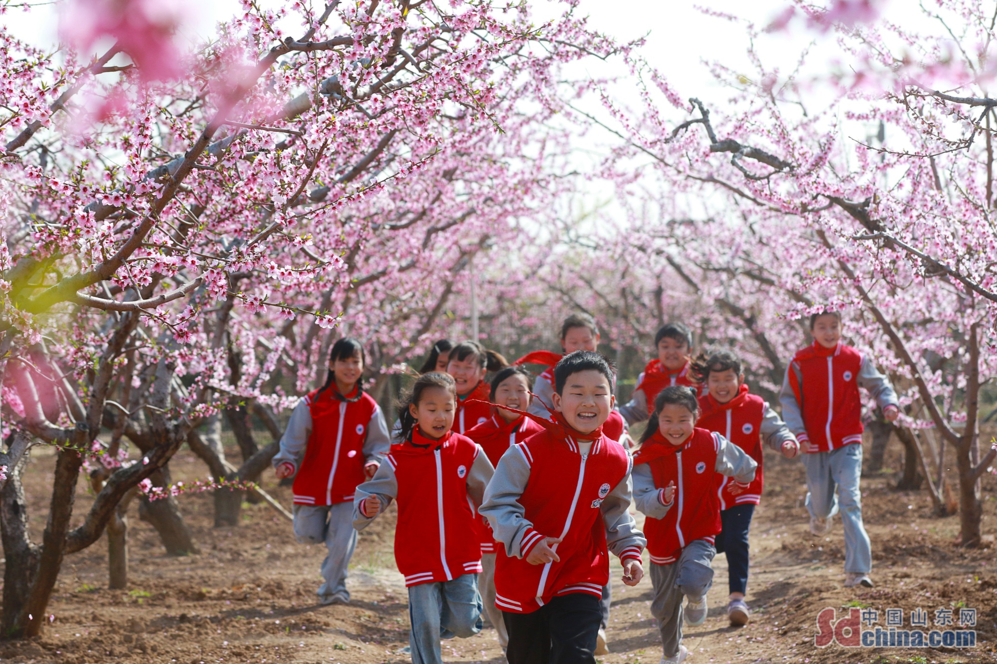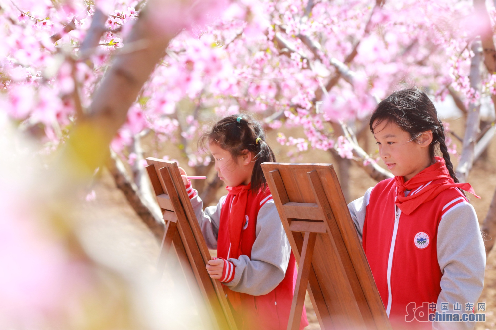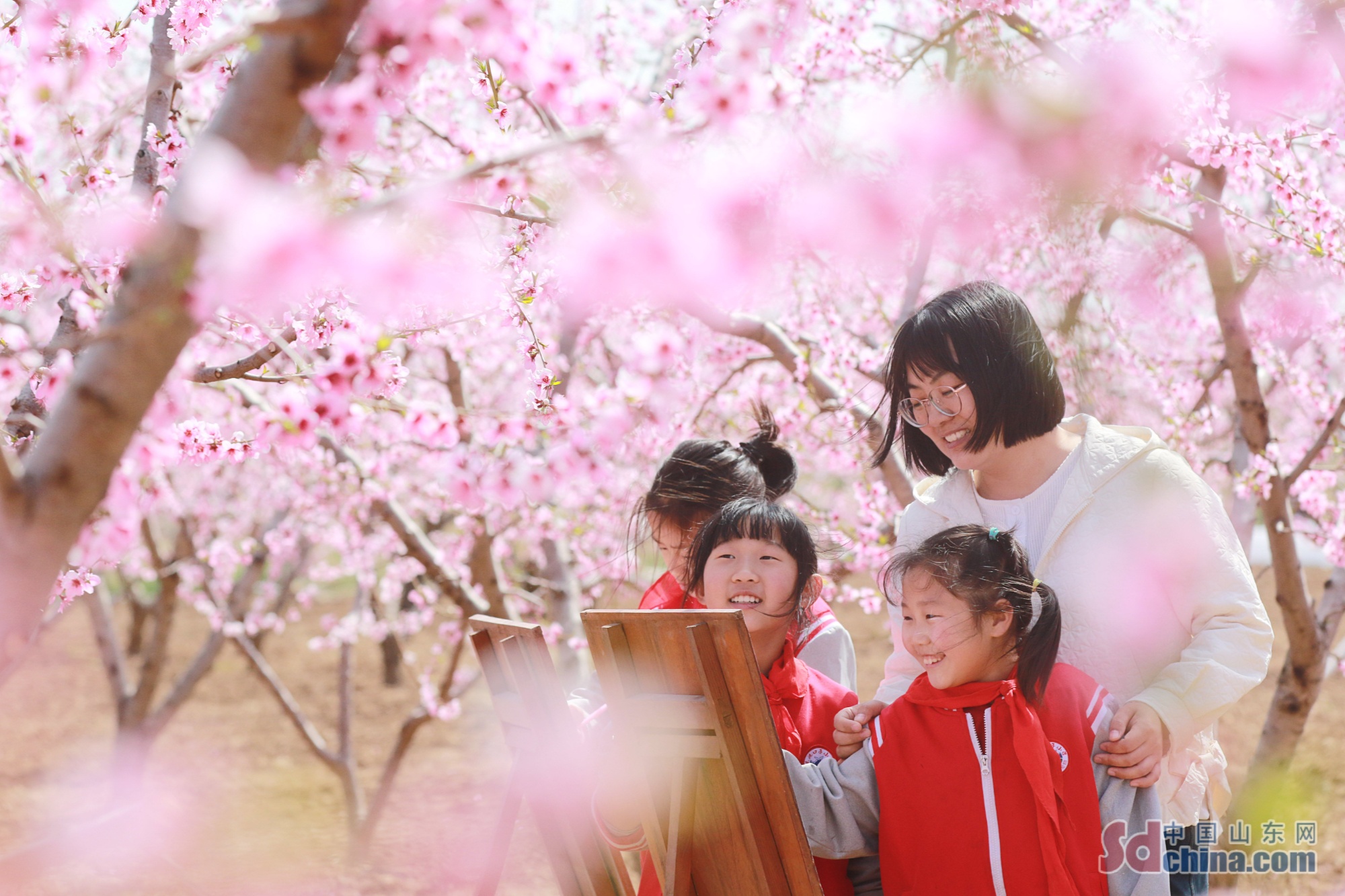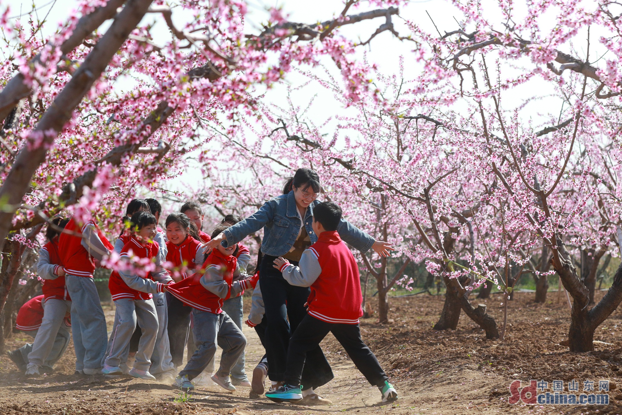 潍坊高密市东北乡东流口子小学将课堂搬进繁花满枝的桃林。老师带领孩子们赏桃花、嬉戏奔跑、临摹花影、学习农事知识,让孩子们在自然中释放童真,沉浸式感受春日与大地的生机,把实践教育融入美好春光。(李海涛 摄)