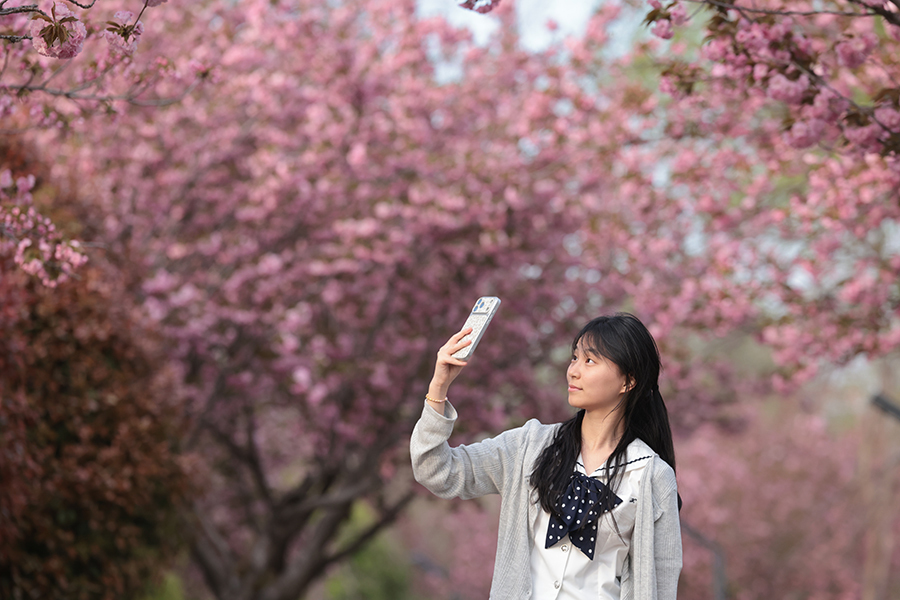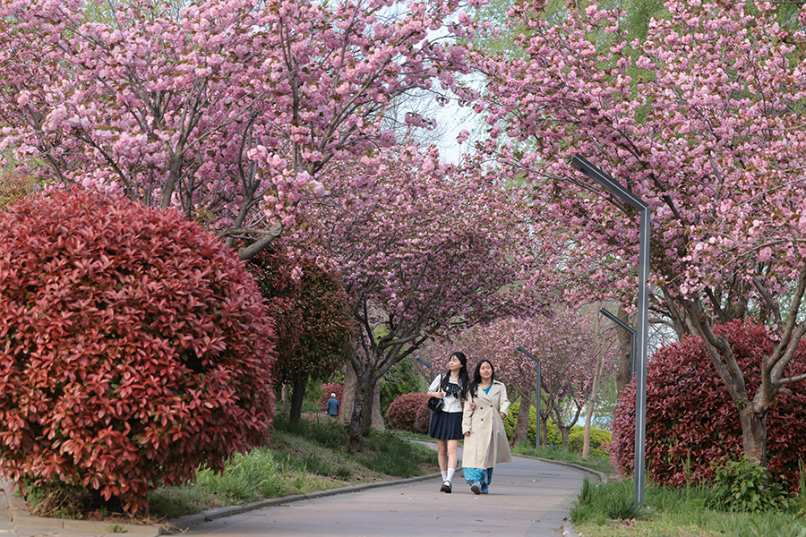 日前,聊城市利民路附近徒骇河畔,樱花竞相绽放,粉白交织的花海宛如云霞般铺展,将小路装点得如梦似幻,吸引了众多市民前来打卡拍照。