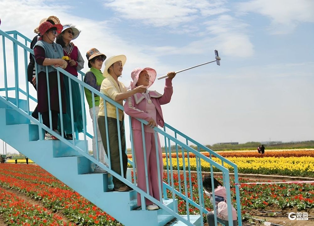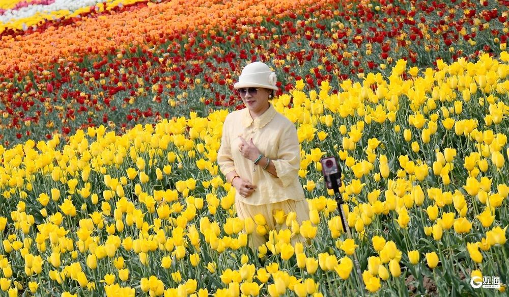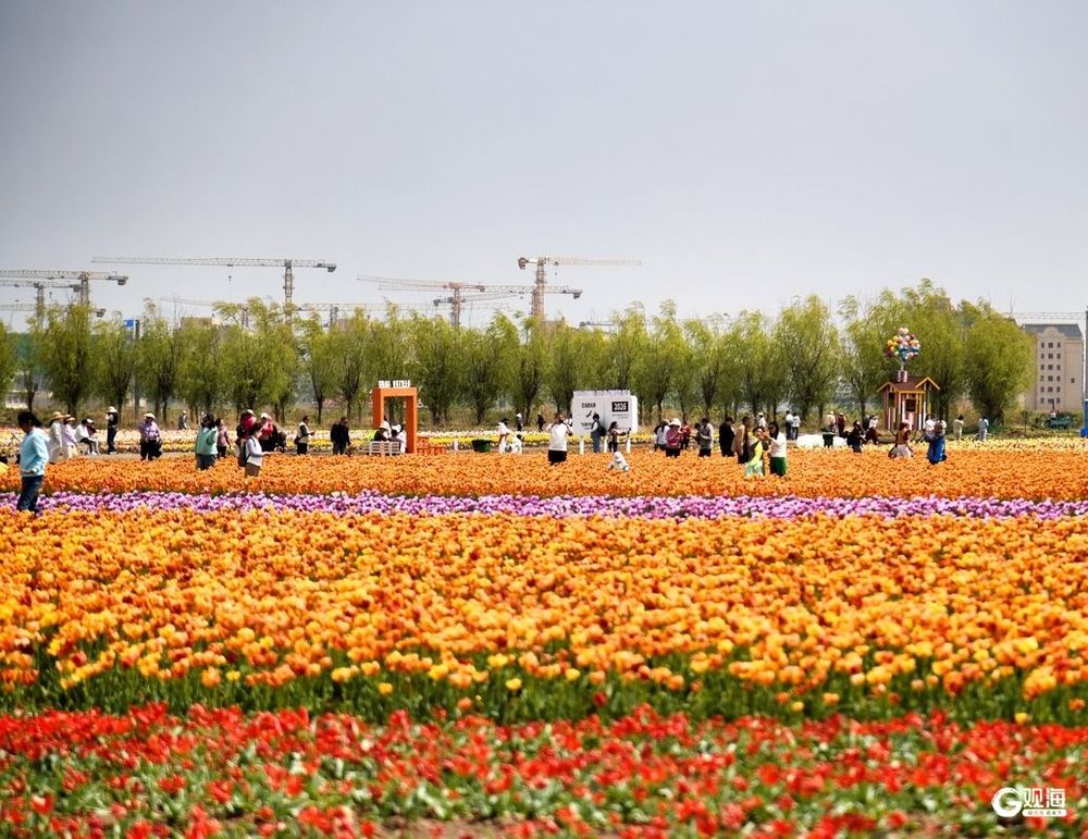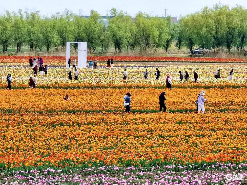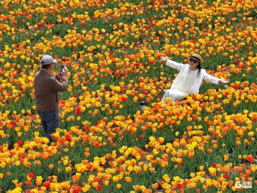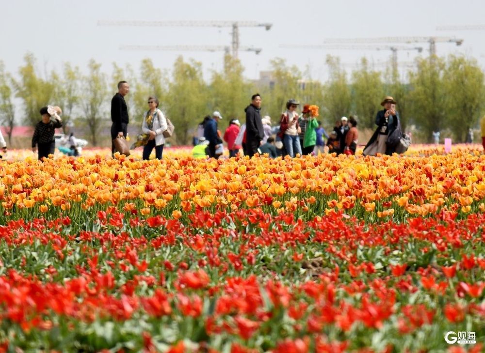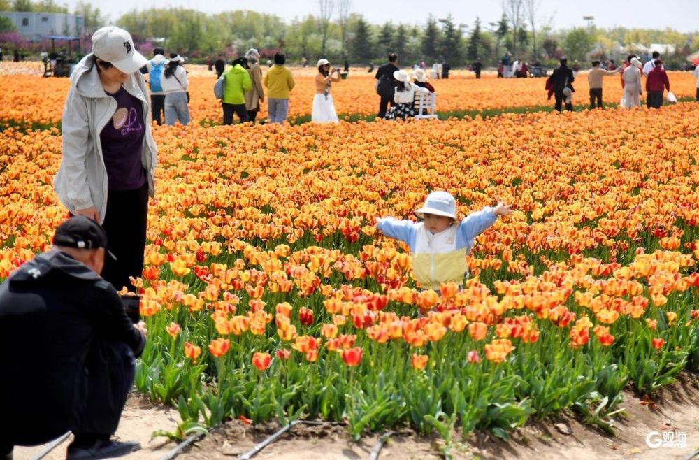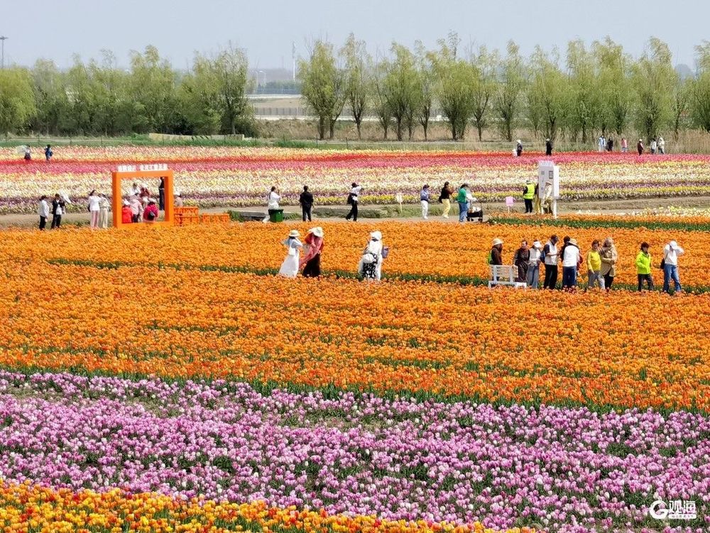 16日,记者在胶东国际机场旁看到,300亩郁金香花海已全面进入盛花期。吸引了众多市民游前来观赏、这片紧邻跑道的花田,汇集了30余个品种,红的似火、黄的赛金、紫的若梦,层层叠叠交织在一起,宛如一片流动的七彩海洋。微风吹过,花朵摇曳生姿,与头顶不时起降的飞机形成一幅动静相宜的画面。这里最独特的景致,莫过于“花海与飞机同框”的震撼画面。每当银鹰划破长空、过花田时,花田间便响起阵阵快门声。游客们纷纷在“云端观景台”打卡,定格这专属于胶州的硬核浪漫——距离起飞,真的只隔“一朵花的距离”。(青岛日报/观海新闻记者 王雷 文/图)