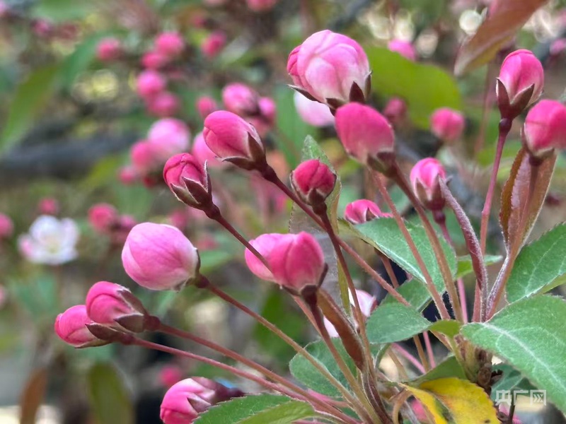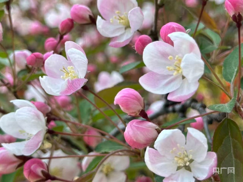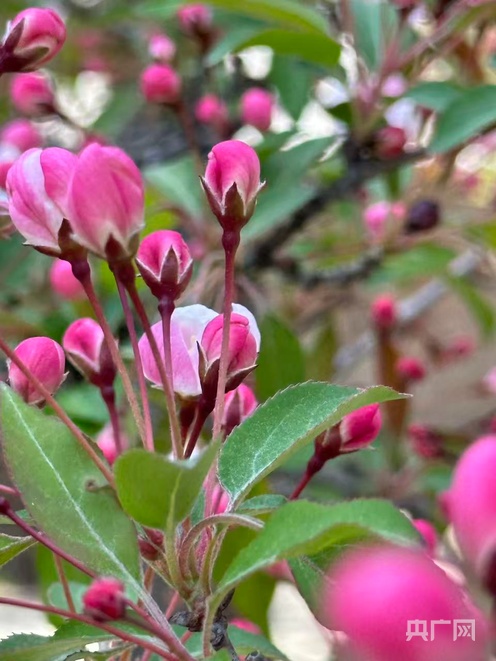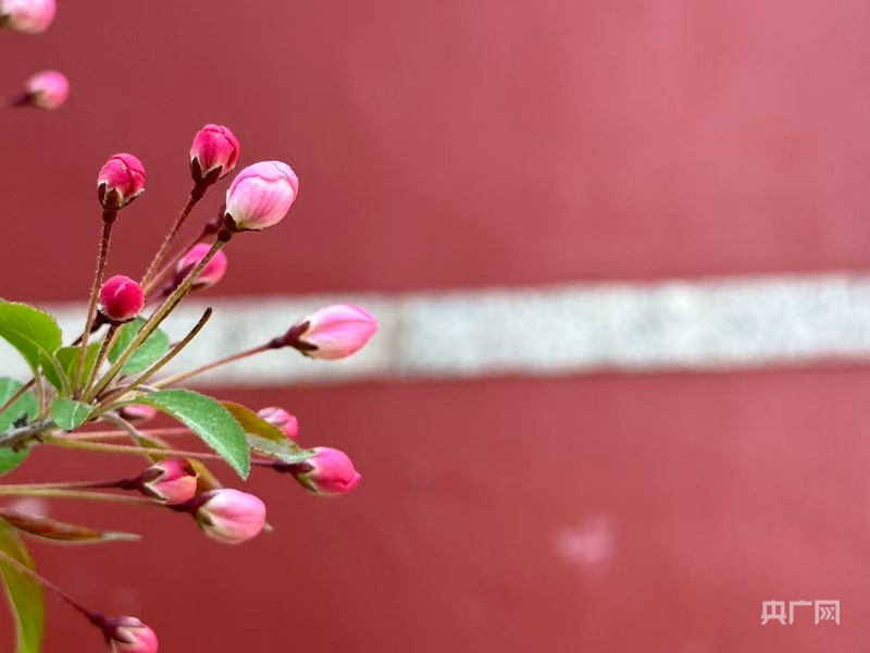 海棠花与红墙相互映衬(央广网发 袁训申 摄)